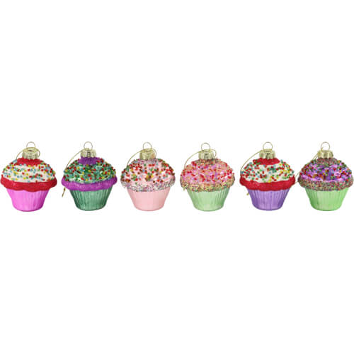 Ein glitzernder Cupcake-Anhänger – süß, farbenfroh und perfekt für eine verspielte Weihnachtsdekoration.