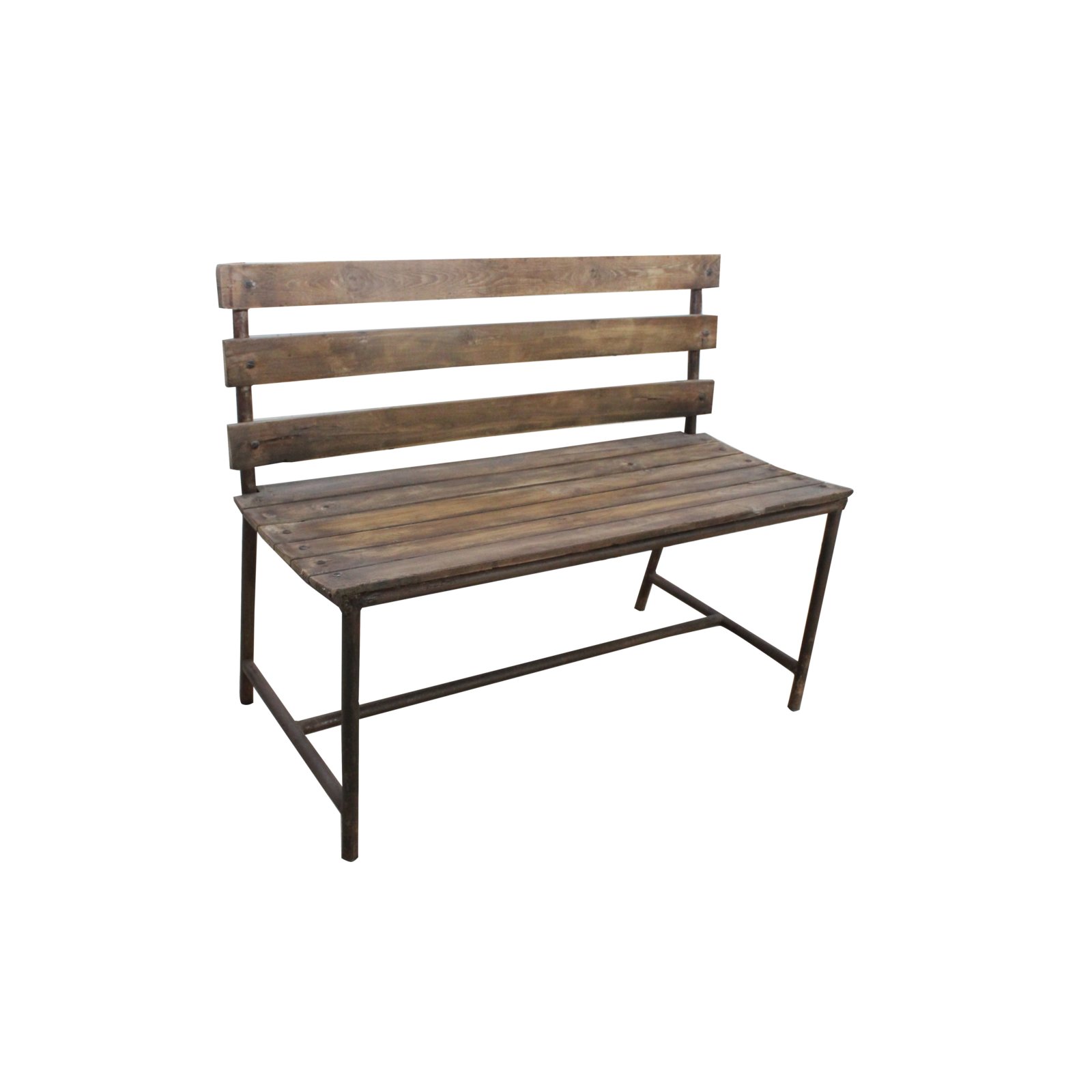 Rustikale Bank aus recyceltem Holz und recyceltem Metall mit Rückenlehne. Ob als Sitzgelegenheit am Küchentisch oder neben der Garderobe in der Diele – jede Bank ist ein Unikat und erzählt mit ihren typischen Gebrauchsspuren und kleinen Macken ihre ganz eigene Geschichte. Ein ganz besonderes Möbelstück für Ihr Zuhause.