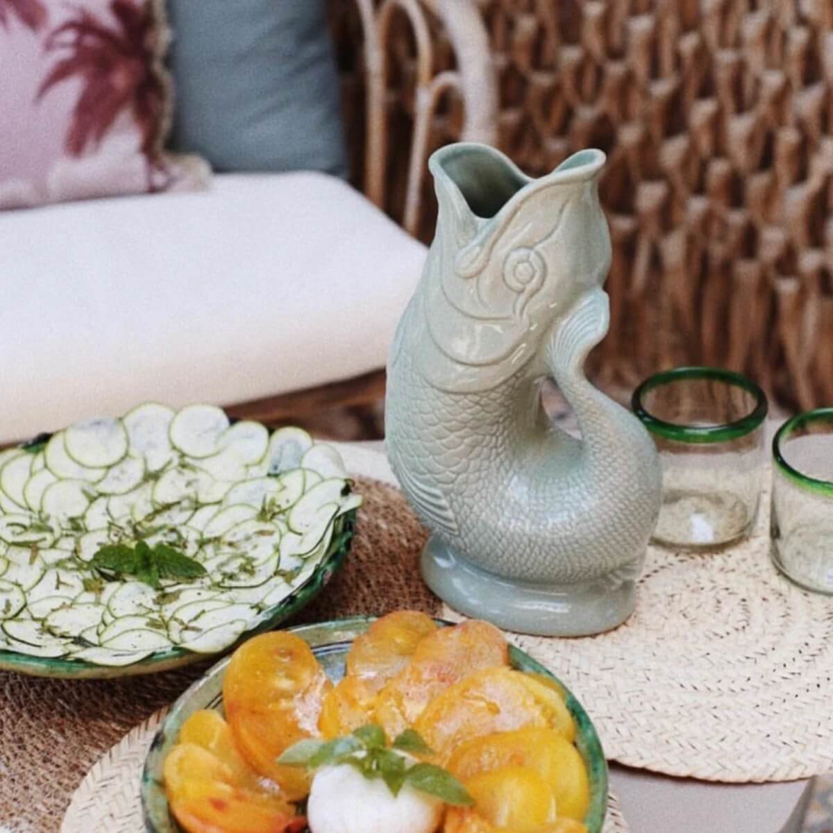 Originale Gluckigluck Karaffe bzw. Vase aus Keramik im bekannten Fisch-Design. Hergestellt in UK. Ein wunderbarer Hingucker in Küche, Wohnzimmer oder auf dem Balkon. Vielseitig einsetzbar und in verschiedenen Größen und Farben kombinierbar.