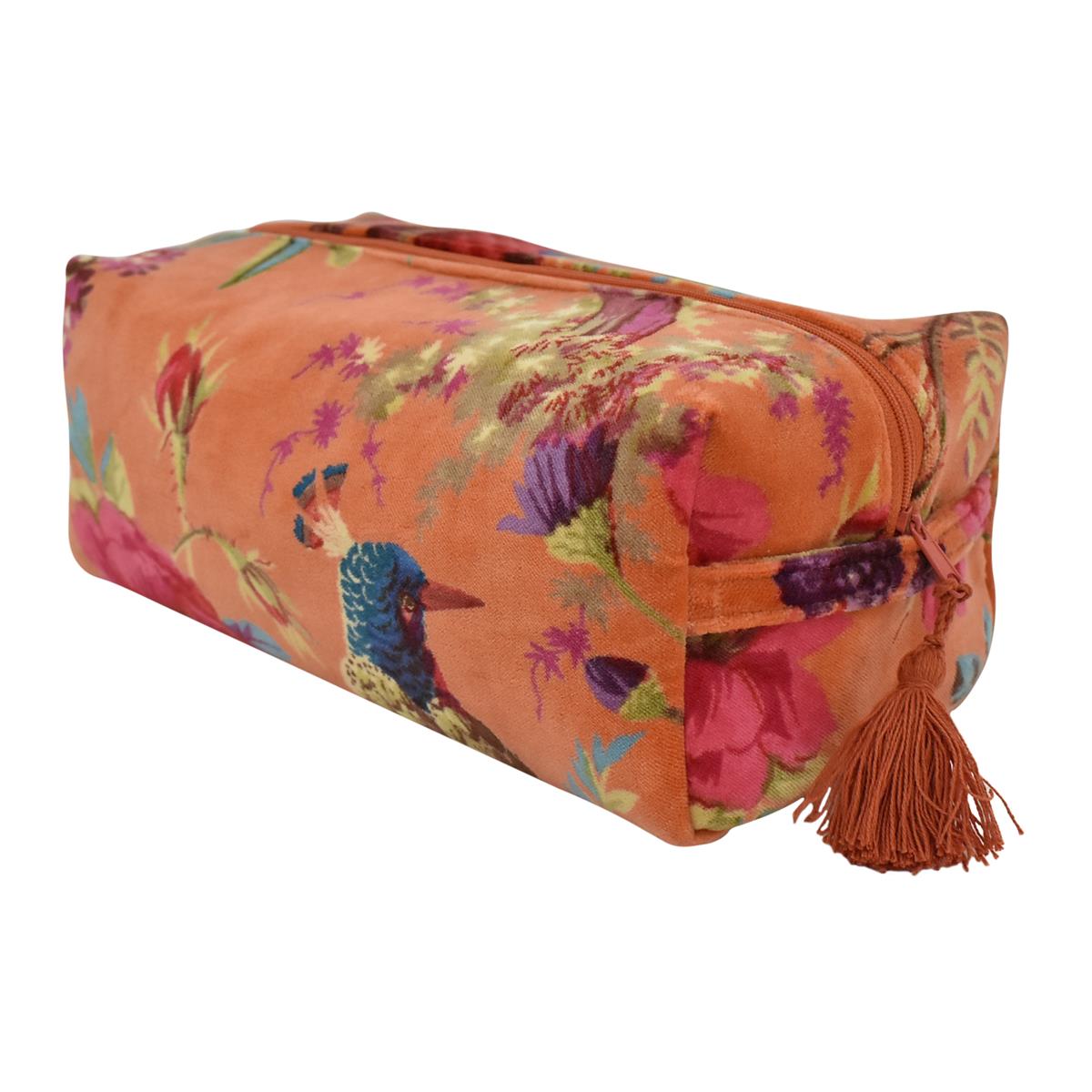 Ob für Beauty-Produkte, Bürstchen oder kleine Essentials – die Kosmetiktasche in warmem Orange strahlt pure Fröhlichkeit aus. Der farbstarke Print verleiht ihr einen sonnigen, tropischen Charakter und macht sie zu einem praktischen Begleiter, der Ordnung schafft und deinen Alltag gleichzeitig bunter macht.