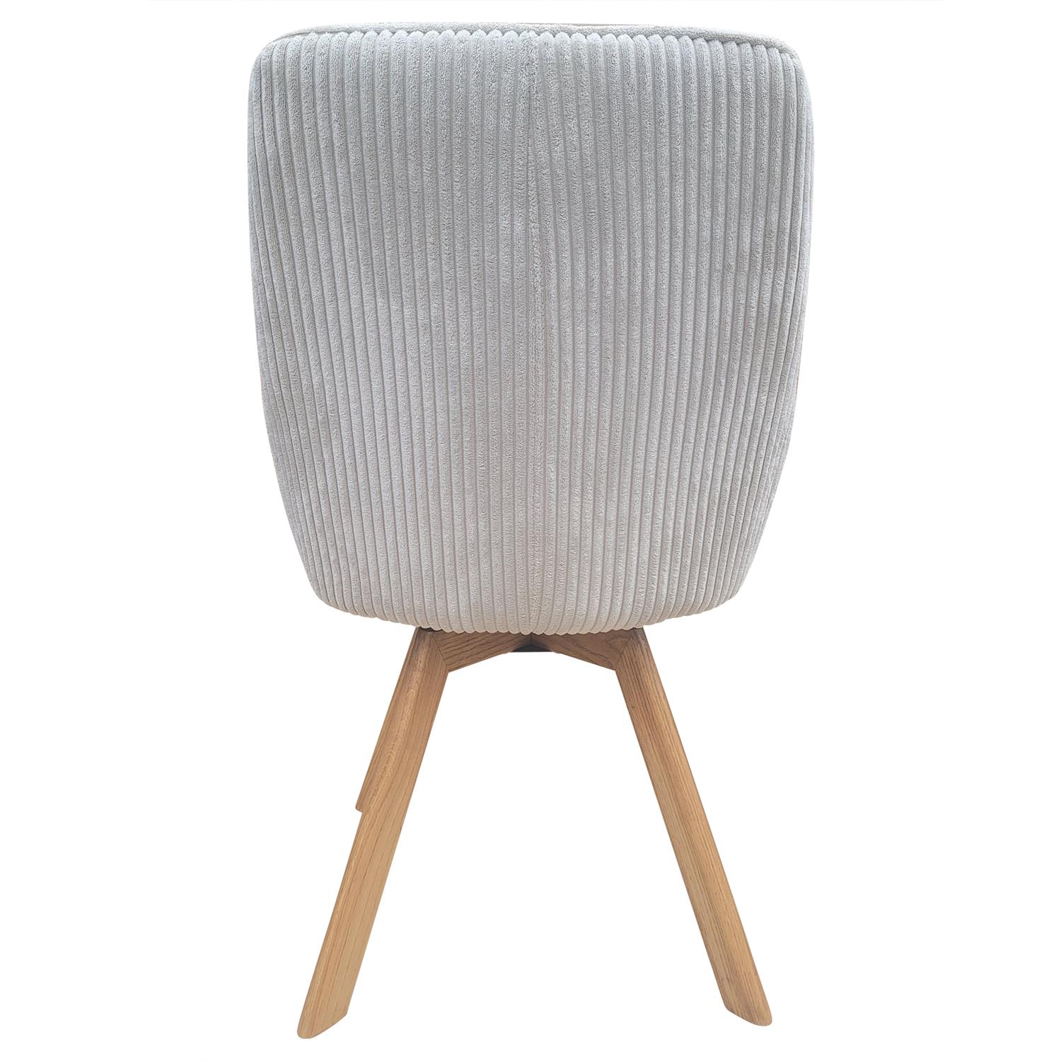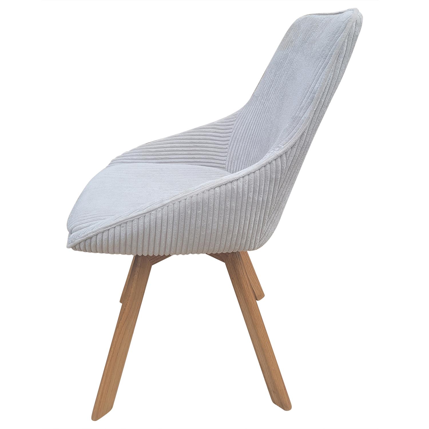Der Cord Stuhl in Creme mit dunklen Eichenholzbeinen bietet eine stilvolle und bequeme Sitzgelegenheit, ideal für Esszimmer und andere Wohnbereiche.